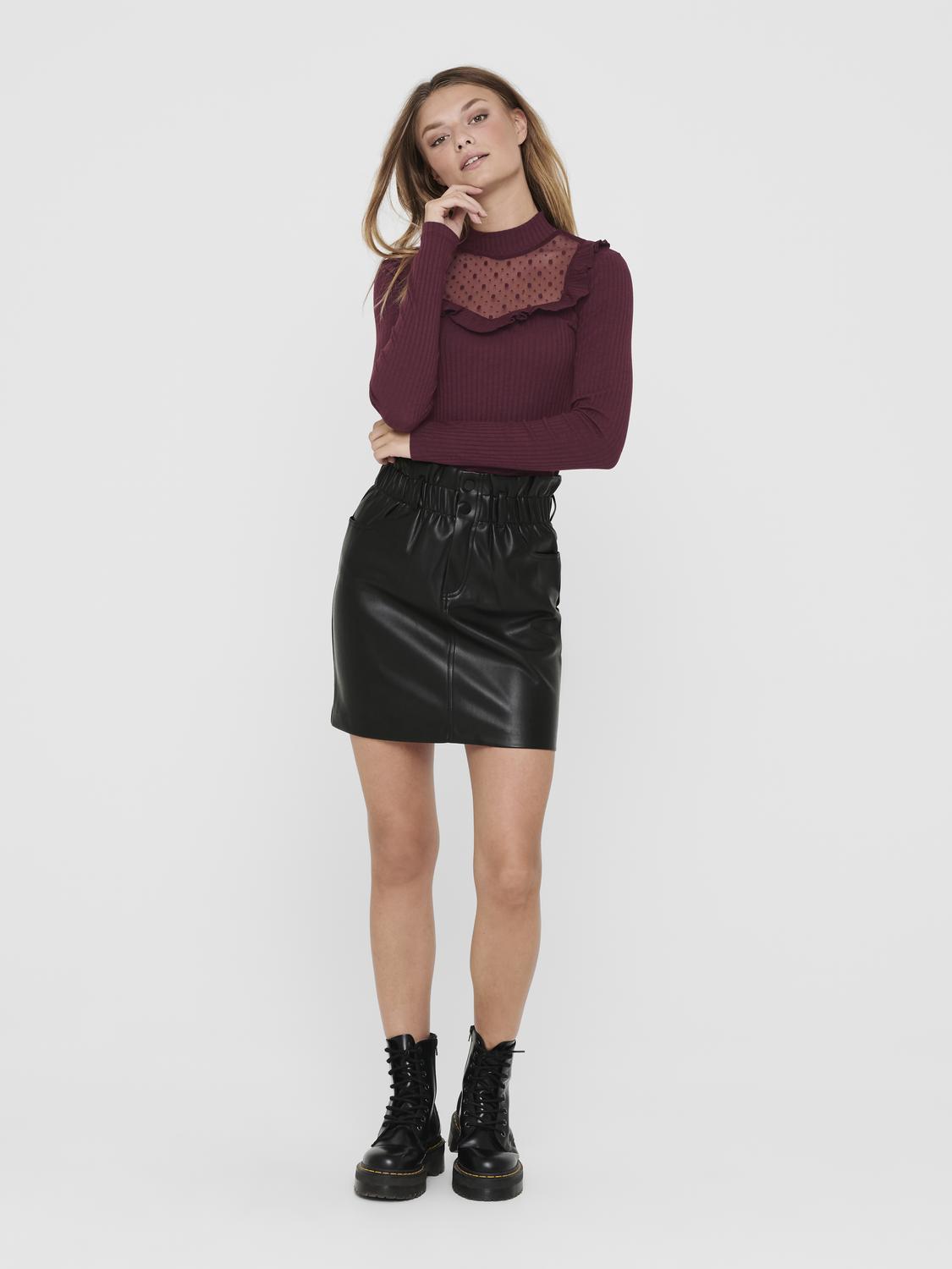 Δερμάτινη ψηλόμεση mini φούστα .Θηλιές για ζώνη στη μέση, Ψηλόμεση, Πλαϊνές τσέπες, Κλείσιμο με κουμπί και φερμουάρ, Mini μήκος