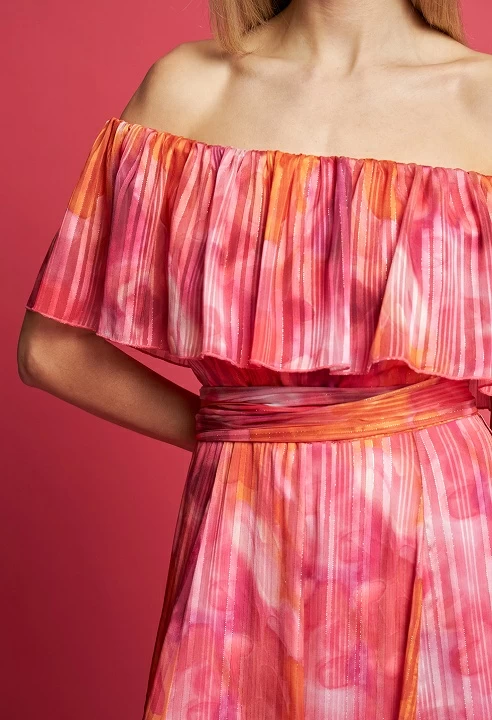 Εμπριμέ φόρεμα με ανοιχτούς ώμους