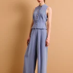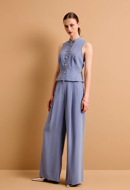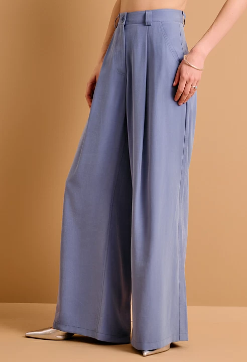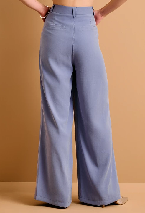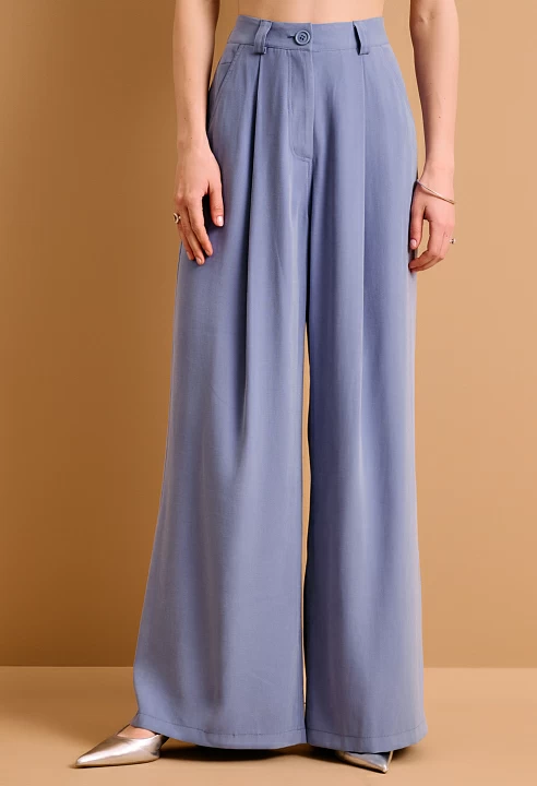Παντελόνι με κανονική μέση και θηλιές, πλαϊνές τσέπες, λεπτομέρεια με πιέτες μπροστά, κλείσιμο μπροστινό μέρος με φερμουάρ και κουμπί, κανονική εφαρμογή.