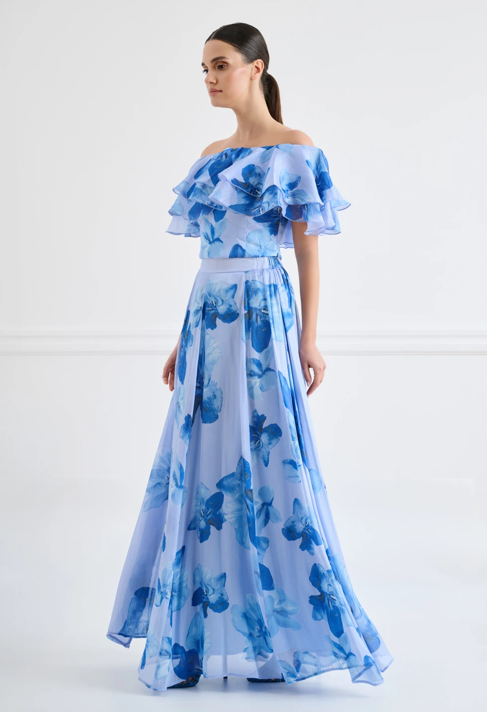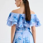 Ρομαντικό τοπ σε σιέλ απόχρωση με εντυπωσιακό φλοράλ print και θηλυκό σχέδιο off-shoulder που αναδεικνύει τους ώμους. Τα αέρινα βολάν στο επάνω μέρος χαρίζουν κίνηση και κομψότητα, δημιουργώντας ένα ιδιαίτερα καλοκαιρινό και elegant αποτέλεσμα. Διαθέτει λάστιχο τύπου σφηκοφωλιά στο πίσω μέρος για άνετη και σταθερή εφαρμογή, ενώ το φερμουάρ στο πλάι εξασφαλίζει εύκολη εφαρμογή. Ιδανικό για κομψές εμφανίσεις, συνδυασμένο με φούστες ή παντελόνια για ένα ολοκληρωμένο καλοκαιρινό σύνολο.