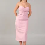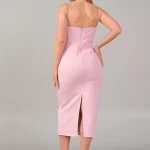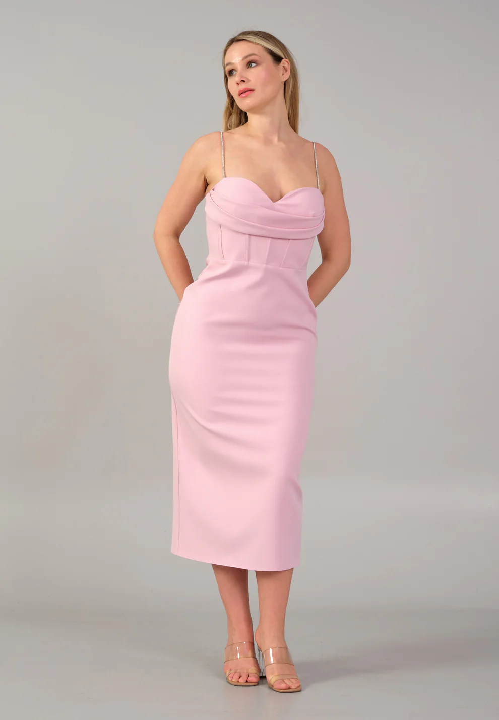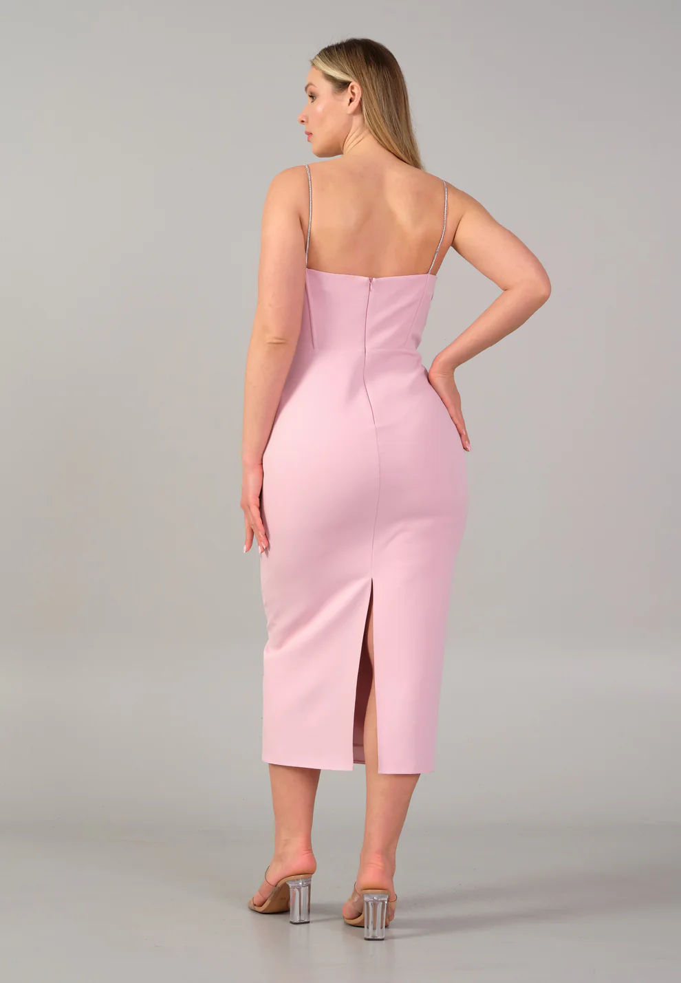 Αμάνικο Μίντι Φόρεμα σε στενή γραμμή με τιράντες στρας – Plus size, Ιδανικό για Βραδινές Εμφανίσεις και για Γάμο/Βάπτιση