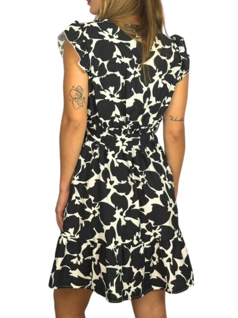 Φόρεμα ασπρόμαυρο με βολάν