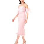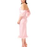 Φόρεμα έξωμο μίντι με πούπουλα στο τελείωμα – Κανονική Γραμμή, Ιδανικό για Γάμο/Βάφτιση