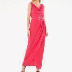 Μάξι φόρεμα αμάνικο με ντραπέ ντεκολτέ, ραφή στη μέση και ασορτί ζώνη.