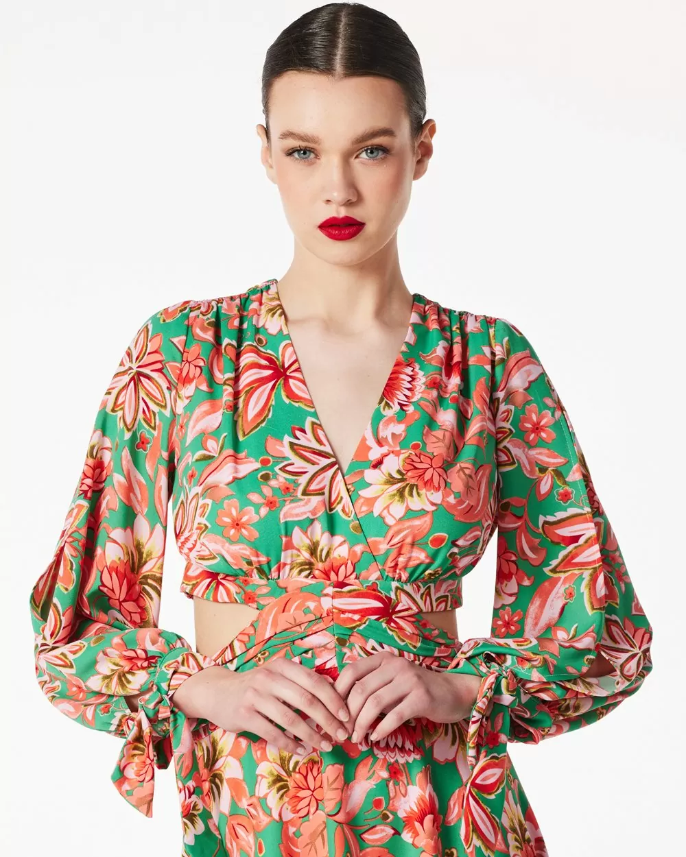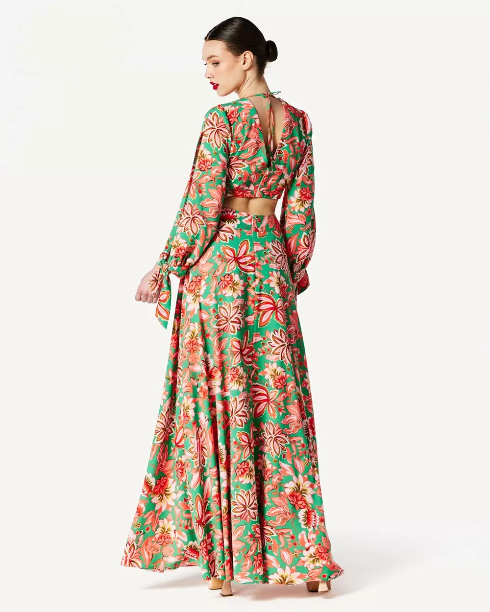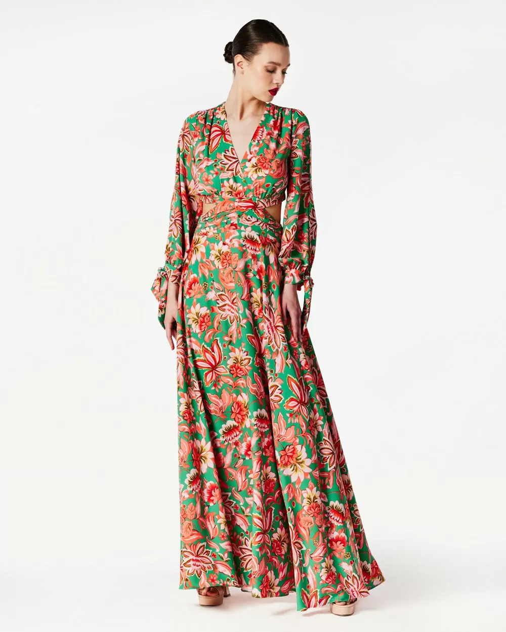 Φόρεμα maxi εμπριμέ floral με άνοιγμα “V” στο ντεκολτέ και στην πλάτη.