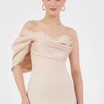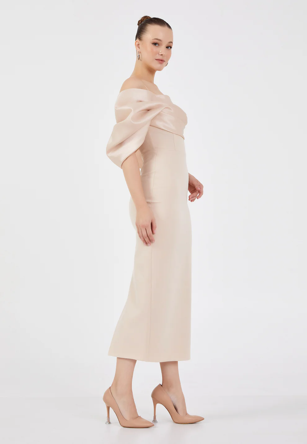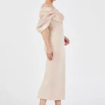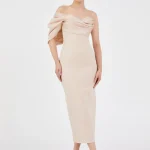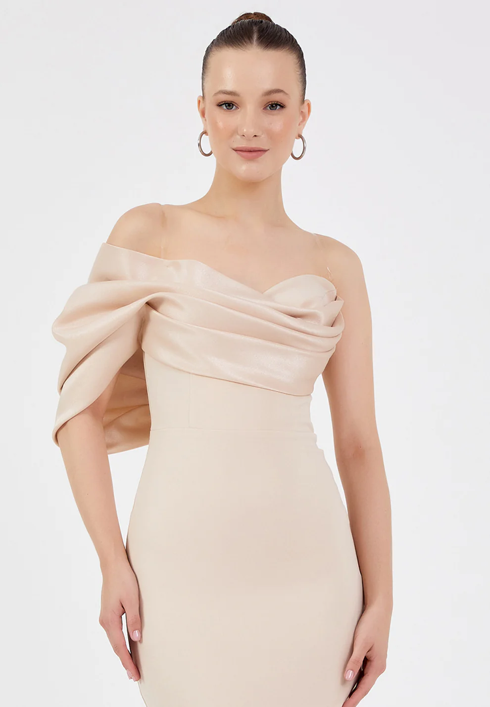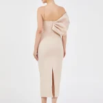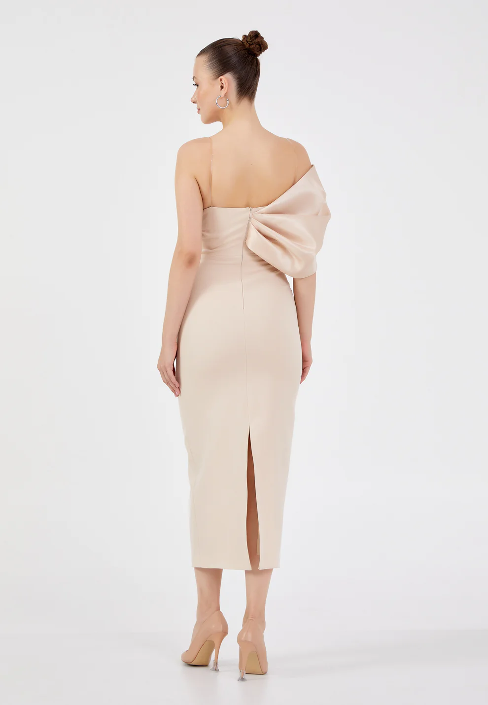 Φόρεμα με εναν ώμο μίντι από από Βισκόζη – Κανονική Γραμμή, Ιδανικό για Βραδινές Εμφανίσεις και για Γάμο/βάπτιση