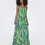 Φόρεμα μάξι με print σε συνδυασμό χρωμάτων ONLY. Λεπτά ραντάκια με δέσιμο στην πλάτη.