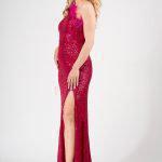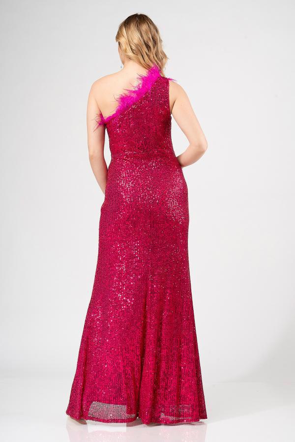 Φόρεμα παγιέτα με εναν ώμο και πούπουλα