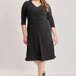 Μίντι φόρεμα σε σούπερ ζέρσεϋ. V λαιμόκοψη. Μανίκια τρουακάρ 3/4. Λεπτομέρεια με παγιέτες στη μέση. Κλος φούστα με πλαϊνά ανοίγματα. Το μοντέλο έχει ύψος 178εκ, στήθος 108, μέση 94, περιφέρεια 114 και φοράει το μέγεθος S