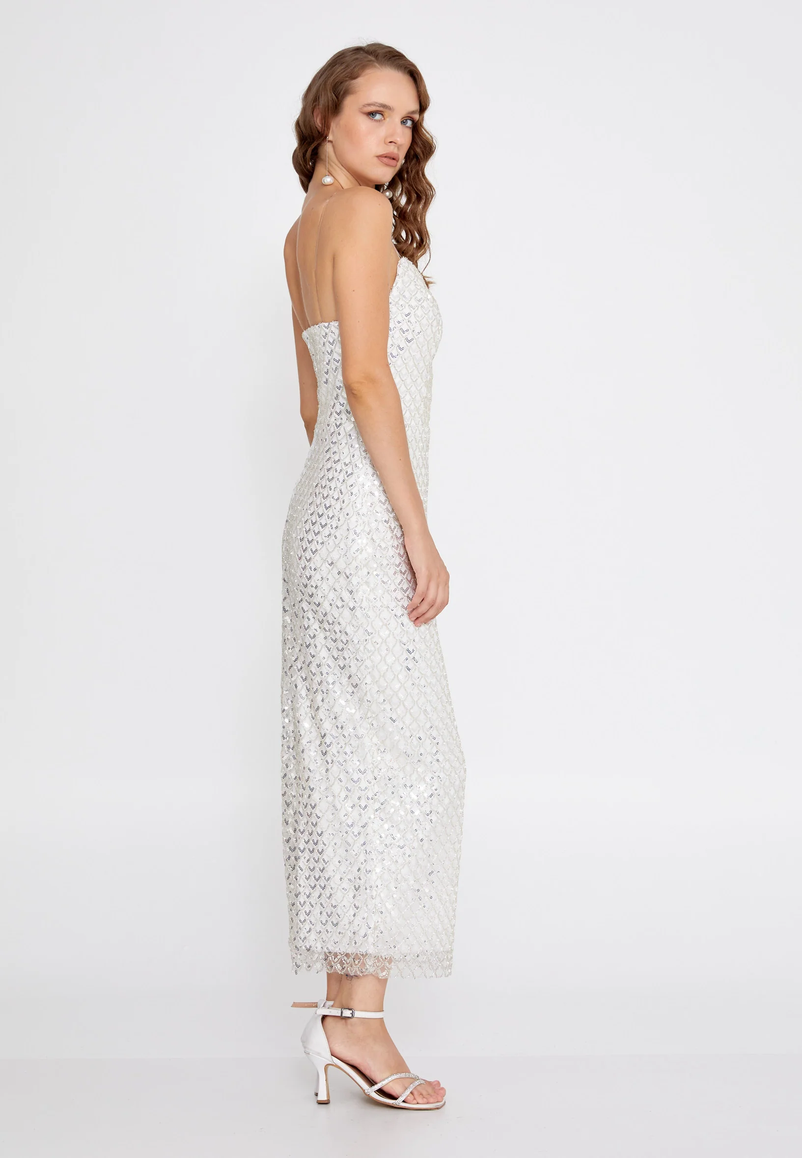 Στράπλες Μίντι Φόρεμα από παγιέτα – Κανονική Γραμμή, Ιδανικό για Καλεσμένη σε Γάμο
