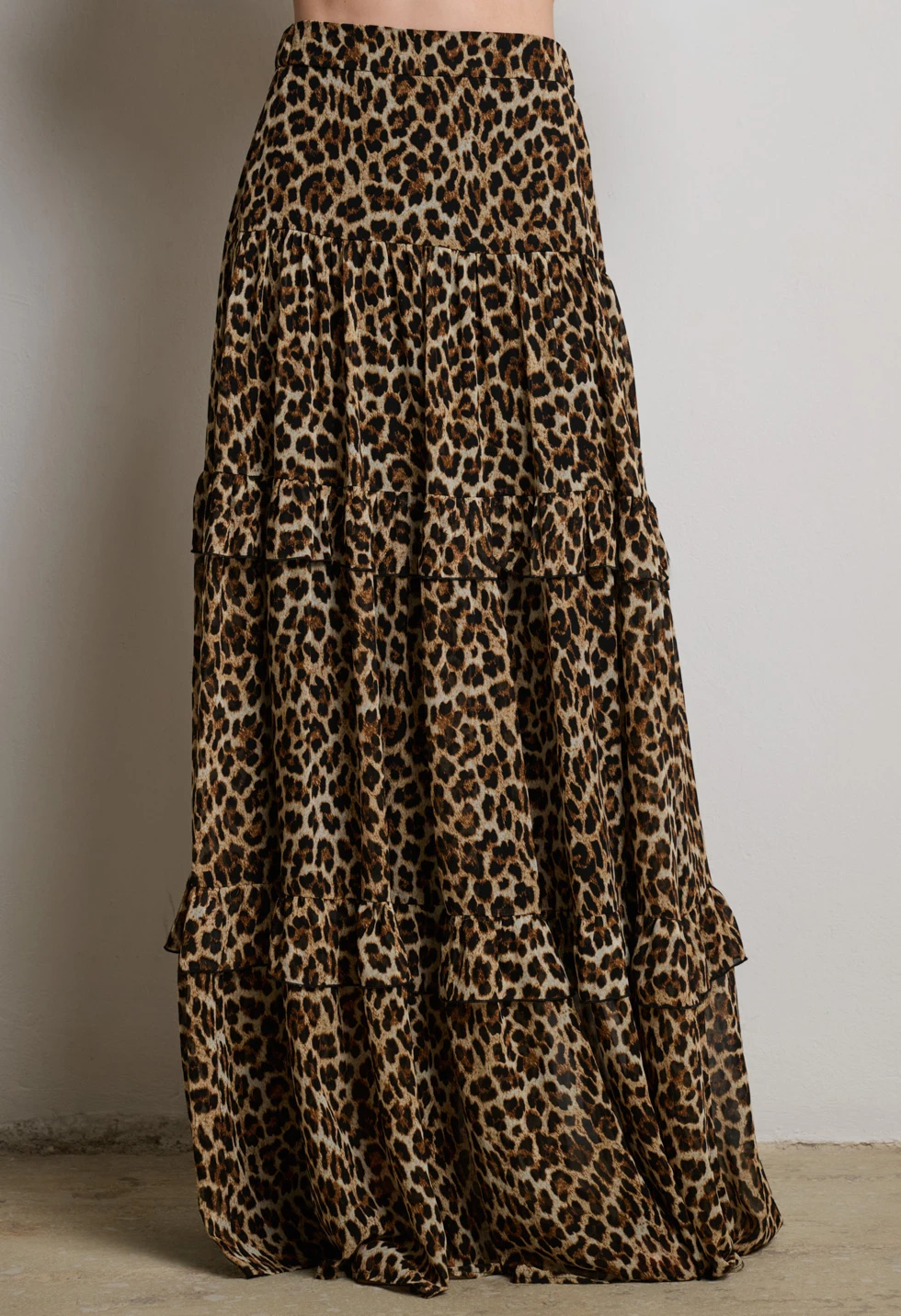 Μακριά φούστα με τμήματα και βολάν, λάστιχο στην μέση, ελαφρύ ύφασμα animal print, κλείσιμο με φερμουάρ στο πίσω μέρος, φοδρα εσωτερικα, κανονική εφαρμογή.