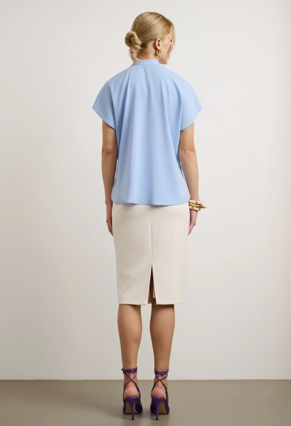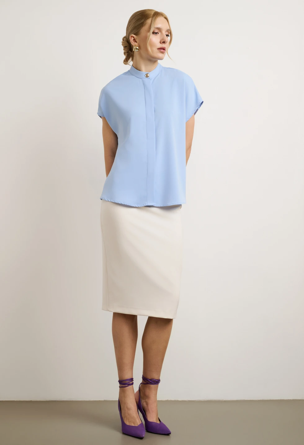 Ψηλόμεση φούστα pencil, κάτω μέρος με τελείωμα σε σκίσιμο, κλείσιμο με φερμουάρ στο πίσω μέρος, κανονική εφαρμογή.