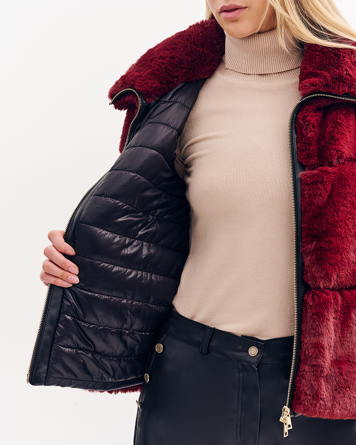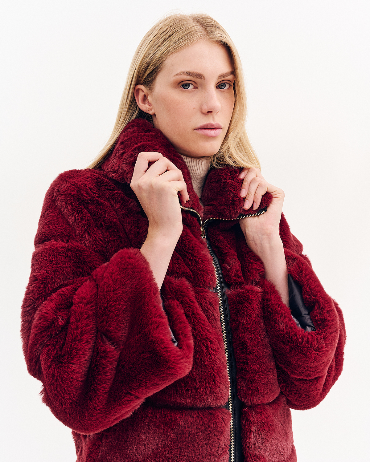 Γούνα με τρουακάρ μανίκι, κοντή με γιακά και εσωτερική επένδυση.