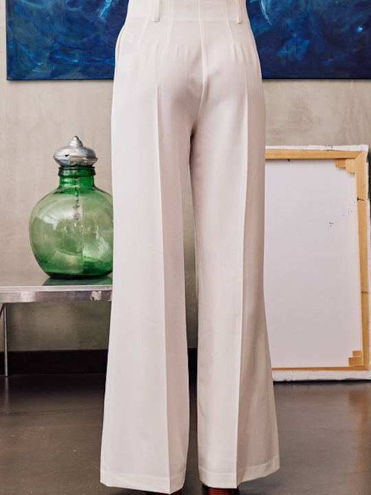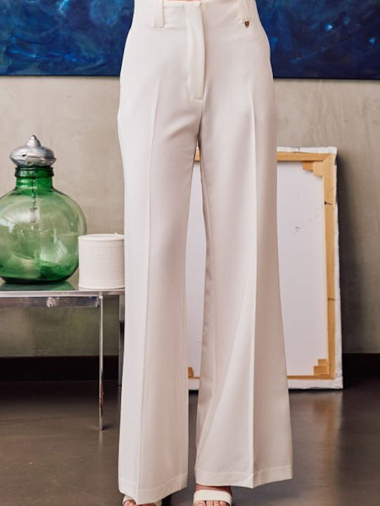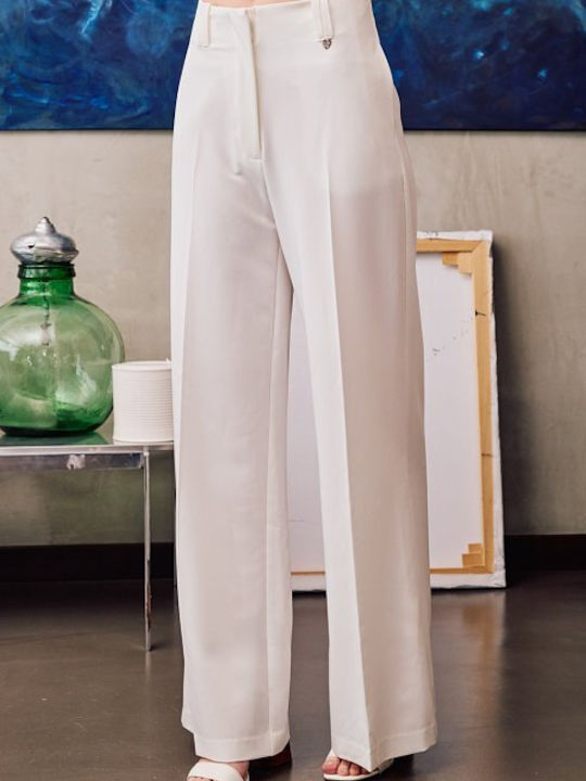 Ψηλόμεσο παντελόνι με ίσιο μπατζάκι φαρδύ, πλαινές τσέπες και θηλιές στη μέση, κλείσιμο μπροστά με φερμουάρ και κουμπί, κανονική εφαρμογή.