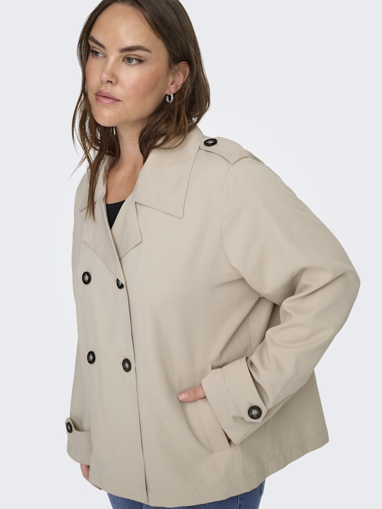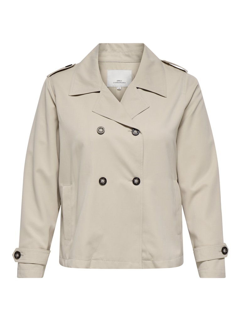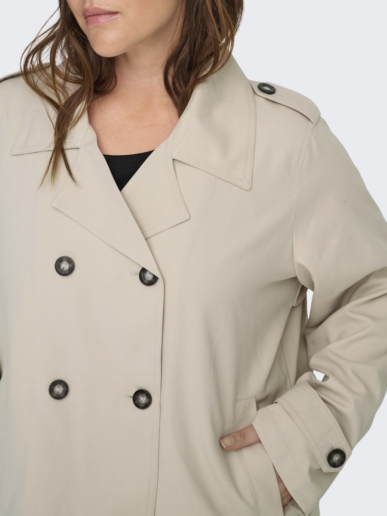 ONLY CARMAKOMA καμπαρντίνα κοντή μπεζ PLUS SIZE , την πιο μοντέρνα εκδοχή του κλασικού σχεδίου. πρόκειται για ένα ευκολοφόρετο γυναικείο πανωφόρι που ξεχωρίζει χάρη στο σταυρωτό κλείσιμο με τα κουμπιά σε αντίθεση και τον φαρδύ, εντυπωσιακό γιακά.