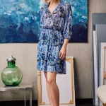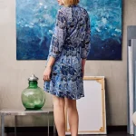 Μίνι φόρεμα με στρόγγυλη λαιμόκοψη και V ντεκολτέ, κλείσιμο μπροστά με κουμπιά, μανίκι κάτω από τον αγκώνα που καταλήγει σε λάστιχο, ελαστική μέση και ασορτί ζώνη, φόδρα εσωτερικά, κανονική εφαρμογή.