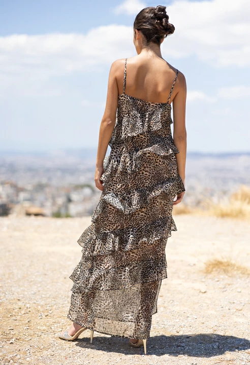 Λεοπάρ φόρεμα με ασύμμετρα βολάν