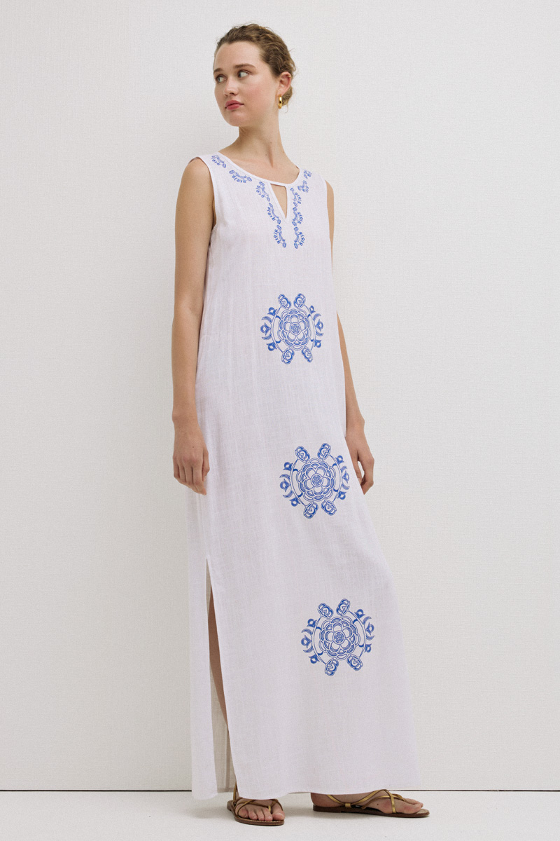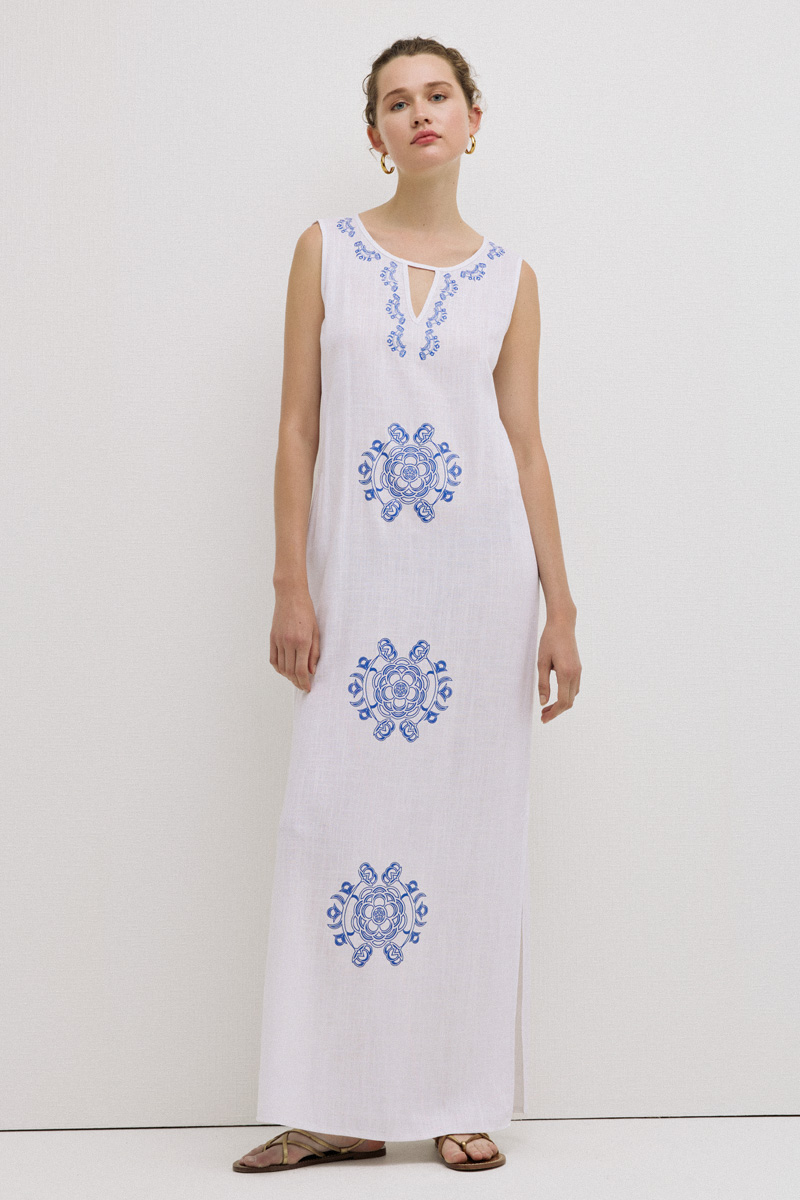 Αμάνικο Φόρεμα, Σκίσιμο στο Πλάι, Κορδόνι με Φουντάκια σο Τελείωμα, Διαθέτει Μεσοφόρι