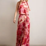 Ψηλόμεση μακριά φούστα, κρουαζέ δέσιμο στο πλάι με κόμπο, φόδρα εσωτερικά, κανονική εφαρμογή.