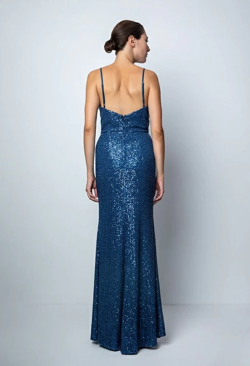 Μακρύ φόρεμα με βαθύ V ντεκολτέ, λεπτές ρυθμιζόμενες τιράντες, γοργονέ στυλ, σκίσιμο μπροστά στο κάτω μέρεος, φόδρα εσωτερικά, κλείσιμο με φερμουάρ στο πίσω μέρος, εφαρμοστή γραμμή.Το μοντέλο φοράει νούμερο S, Στήθος: 90 Μέση: 70 Περιφέρεια: 98 Μάκρος από τη μέση 1,18m