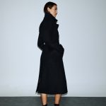 Μάλλινο maxi παλτό με ζώνη, διπλόκουμπο μπροστά και ανδρικό πέτο. Το ύφασμα είναι χοντρό, σε ψιλή υφή, με οικολογική επένδυση για ζεστασιά. Η ζώνη τονίζει τη μέση, ενώ η ίσια γραμμή προσδίδει διαχρονικά modern χαρακτήρα. Συνδυάζεται με matching tailored παντελόνι για sleek, minimal outfit.
