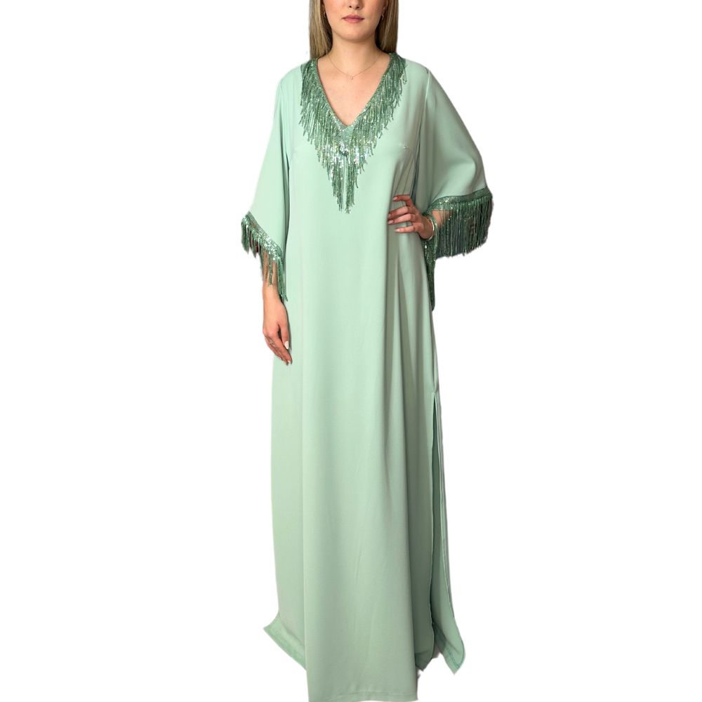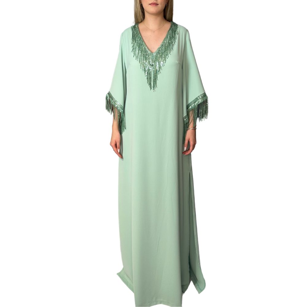 Φόρεμα μακρύ με μανίκι εως τον αγκώνα, Άνοιγμα στην πλάτη.Ιδανικό για επίσημες περιστάσεις, γάμους και βαφτίσεις.