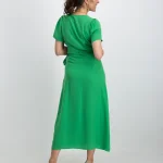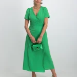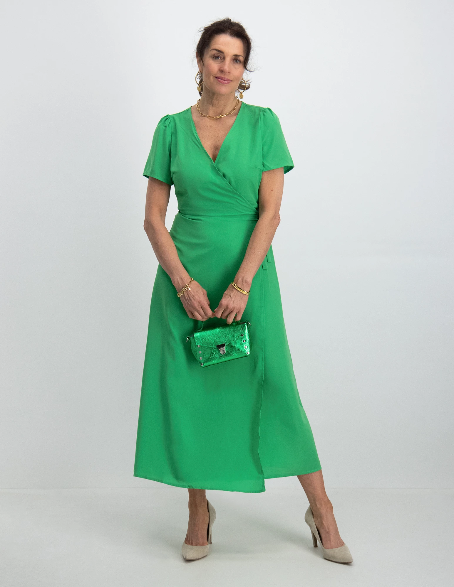 Midi φόρεμα κρουαζέ , V ντεκολτέ, Δένει σταυρωτά στο πλάι, Κοντά μανίκια, Κανονική γραμμή