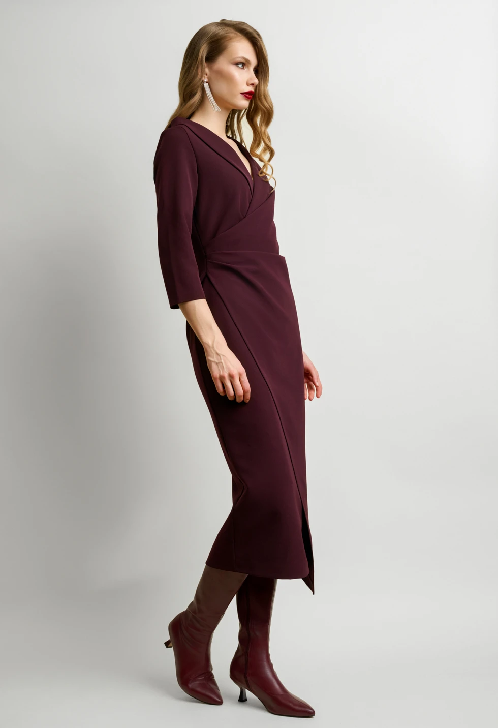 Κομψό midi φόρεμα ιδανικό για elegant εμφανίσεις. Διαθέτει κρουαζέ σχέδιο στο μπροστινό μέρος που αναδεικνύει τη σιλουέτα, 3/4 μανίκι και εσωτερική φόδρα για άψογη εφαρμογή και άνεση. Κλείνει με φερμουάρ στο πίσω μέρος, προσφέροντας διακριτική αλλά σταθερή εφαρμογή.Ένα φόρεμα που συνδυάζει διαχρονική φινέτσα και minimal αισθητική, ιδανικό για επαγγελματικά ραντεβού, βραδινές εξόδους ή ιδιαίτερες περιστάσεις.