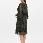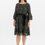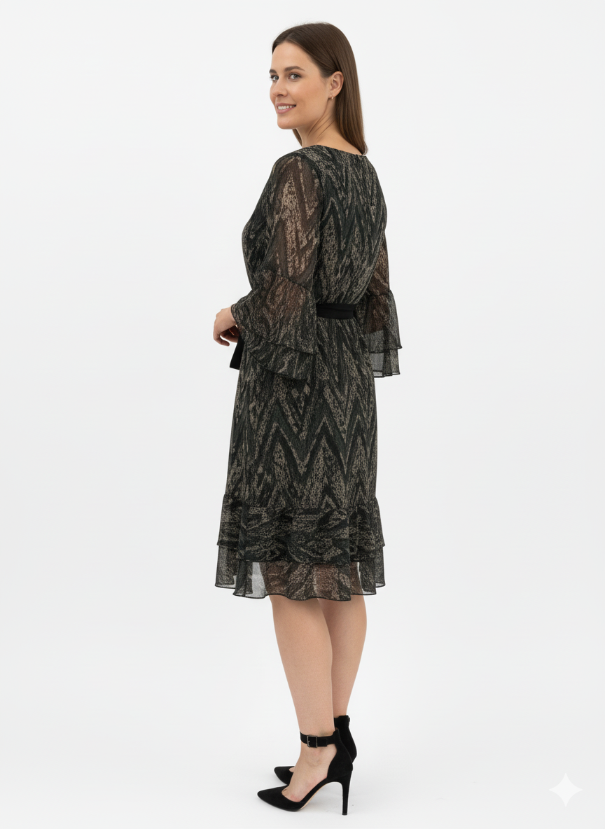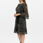 Μίντι φόρεμα σε σκούρο πράσινο-μαύρο με ανάγλυφα σχέδια