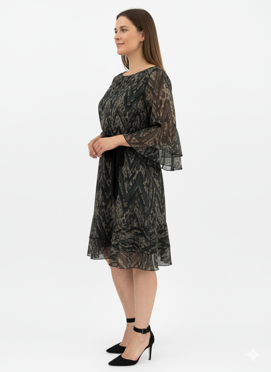 Μίνι φόρεμα με σχέδια και μανίκια καμπάνα Plus size