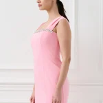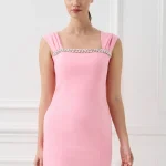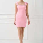 Κομψό mini φόρεμα ελαστικό με εφαρμοστή γραμμή που αναδεικνύει τη σιλουέτα. Διαθέτει φαρδιές τιράντες και εντυπωσιακή διακοσμητική λεπτομέρεια με στρας στο ντεκολτέ, προσθέτοντας λάμψη και θηλυκότητα. Με εσωτερική φόδρα για άνετη εφαρμογή και κλείσιμο με φερμουάρ στην πλάτη. Διατίθεται σε ροζ και μαύρη απόχρωση. Ιδανικό για βραδινές εξόδους, εκδηλώσεις και ιδιαίτερες περιστάσεις.