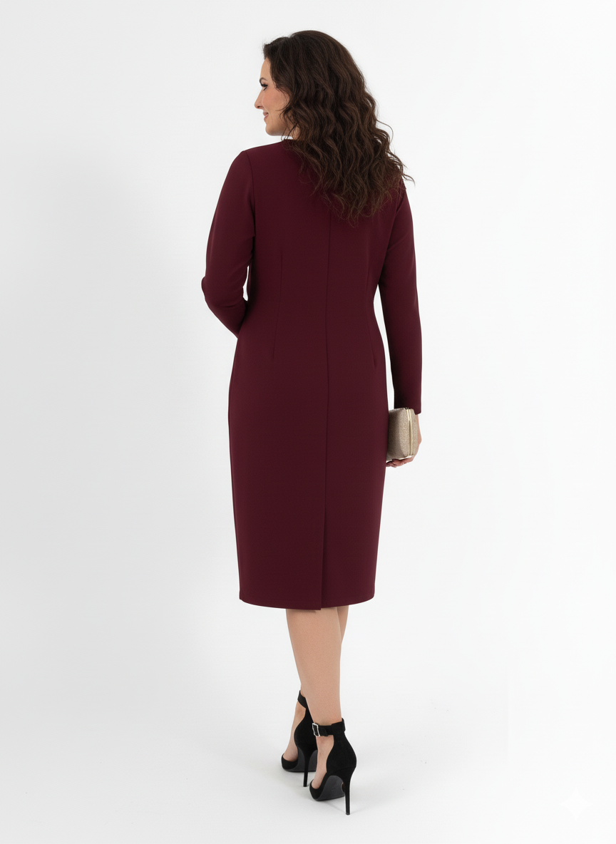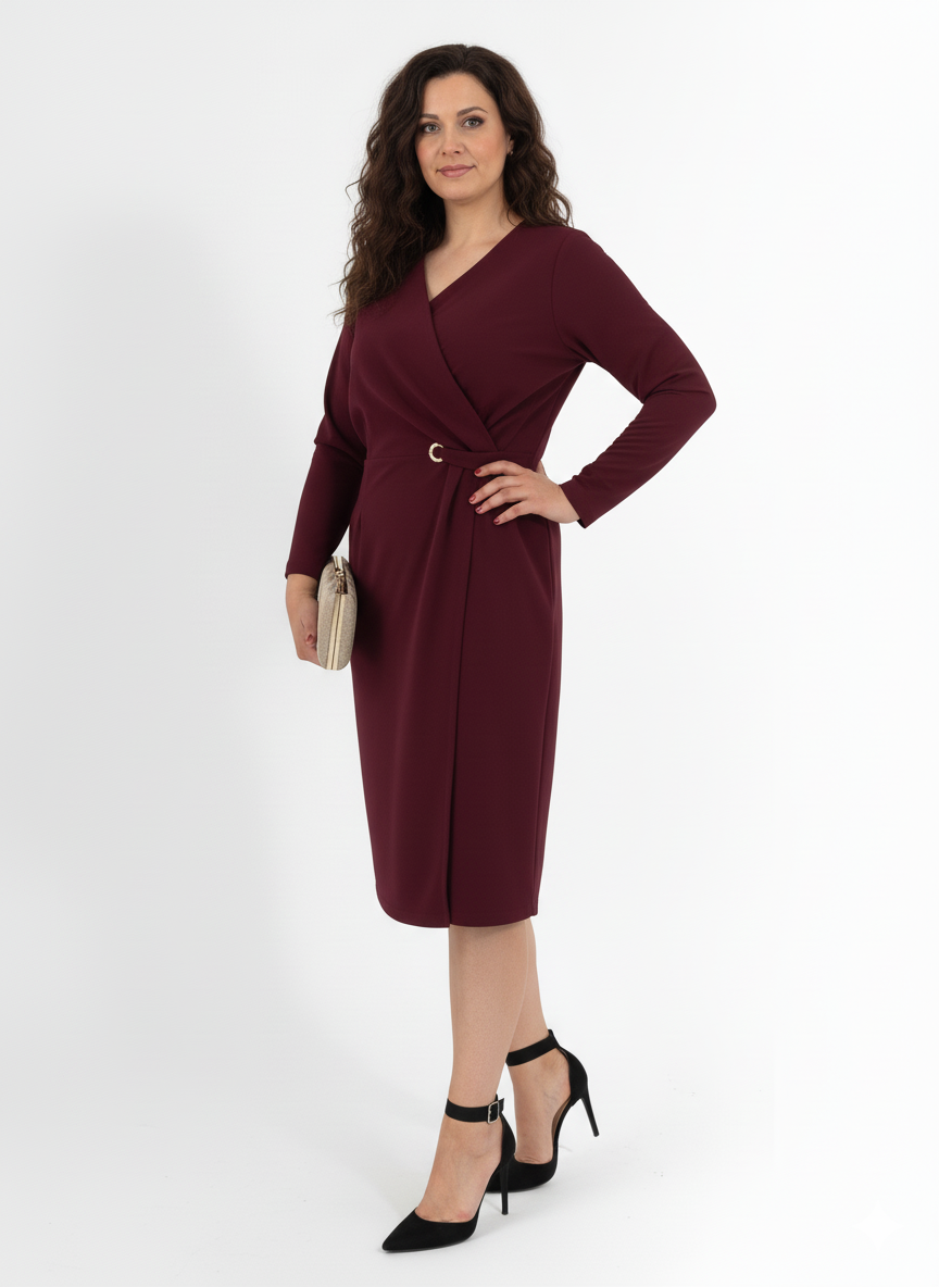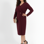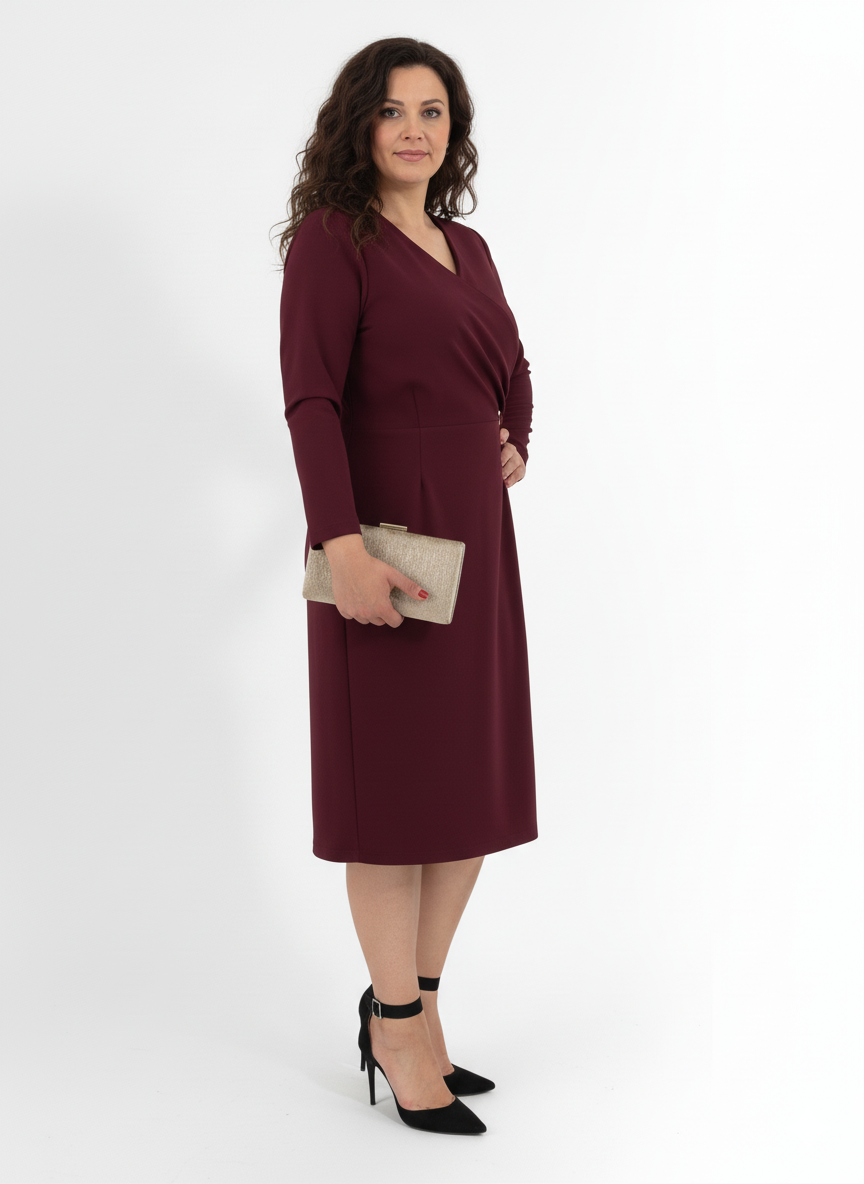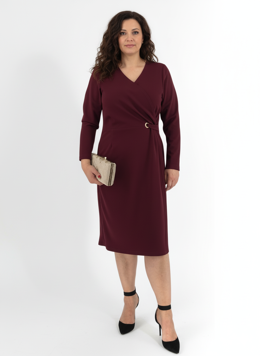Μίντι φόρεμα κρουαζέ σε βαθύ χρώμα βουργουνδίας