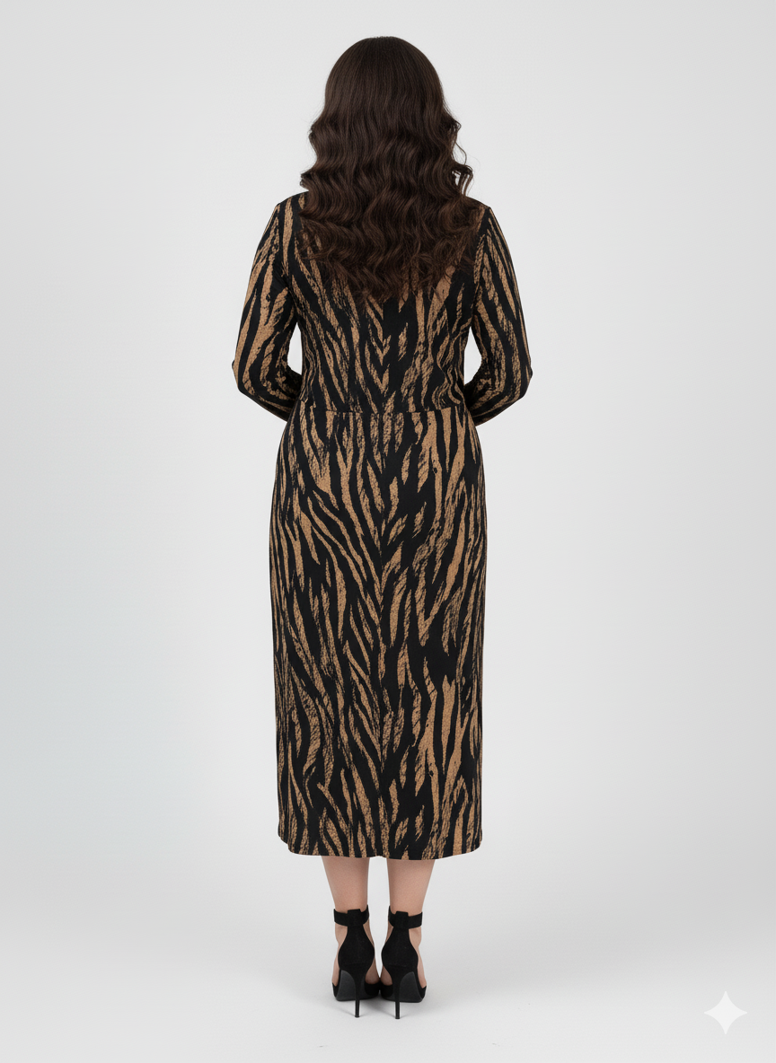 Μίντι φόρεμα σε μαύρο φόντο με animal print σε καφέ τόνους