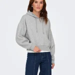 ONLY μπλούζα φούτερ γκρι, που συνδυάζει την άνεση με το μοντέρνο στυλ. Πρόκειται για ένα νεανικό γυναικείο top σε κοντό μήκος (cropped), που αναδεικνύει τη μέση και προσθέτει μια δυναμική sport πινελιά στην εμφάνισή σας.