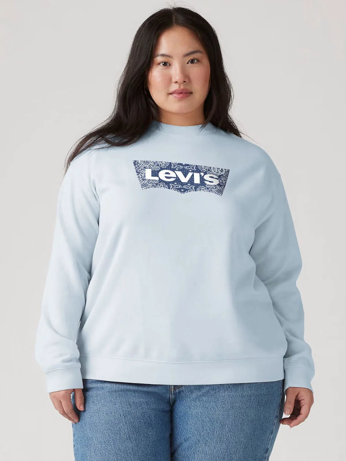 LEVIS μπλούζα φούτερ γαλάζια, που συνδυάζει την ποιότητα με το διαχρονικό στυλ. Πρόκειται για ένα άνετο γυναικείο top που ξεχωρίζει χάρη στο εμβληματικό λογότυπο στο στήθος, το οποίο διαθέτει ένα ιδιαίτερο μοτίβο (bandana print) για μοντέρνα εμφάνιση.