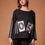 Μαύρη φαρδιά μπλούζα φούτερ με στρογγυλή λαιμόκοψη
