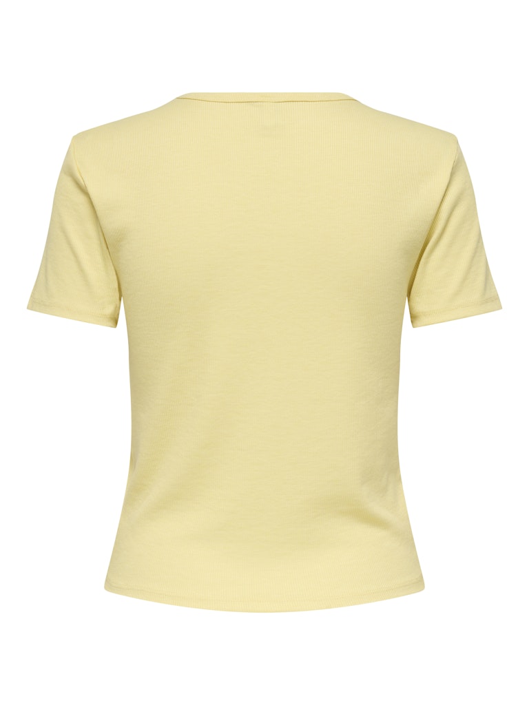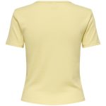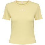 ONLY Μπλούζα κίτρινη. Πρόκειται για ένα δροσερό και απόλυτα κομψό γυναικείο t-shirt σε υπέροχη παστέλ απόχρωση, με κλασική στρογγυλή λαιμόκοψη και κοντά μανίκια. Αυτό που την κάνει να ξεχωρίζει είναι το μίνιμαλ σχέδιο με τις τρεις μικρές κεντημένες μαργαρίτες στο κέντρο του στήθους, προσθέτοντας μια φρέσκια, ρομαντική και αισιόδοξη αισθητική.