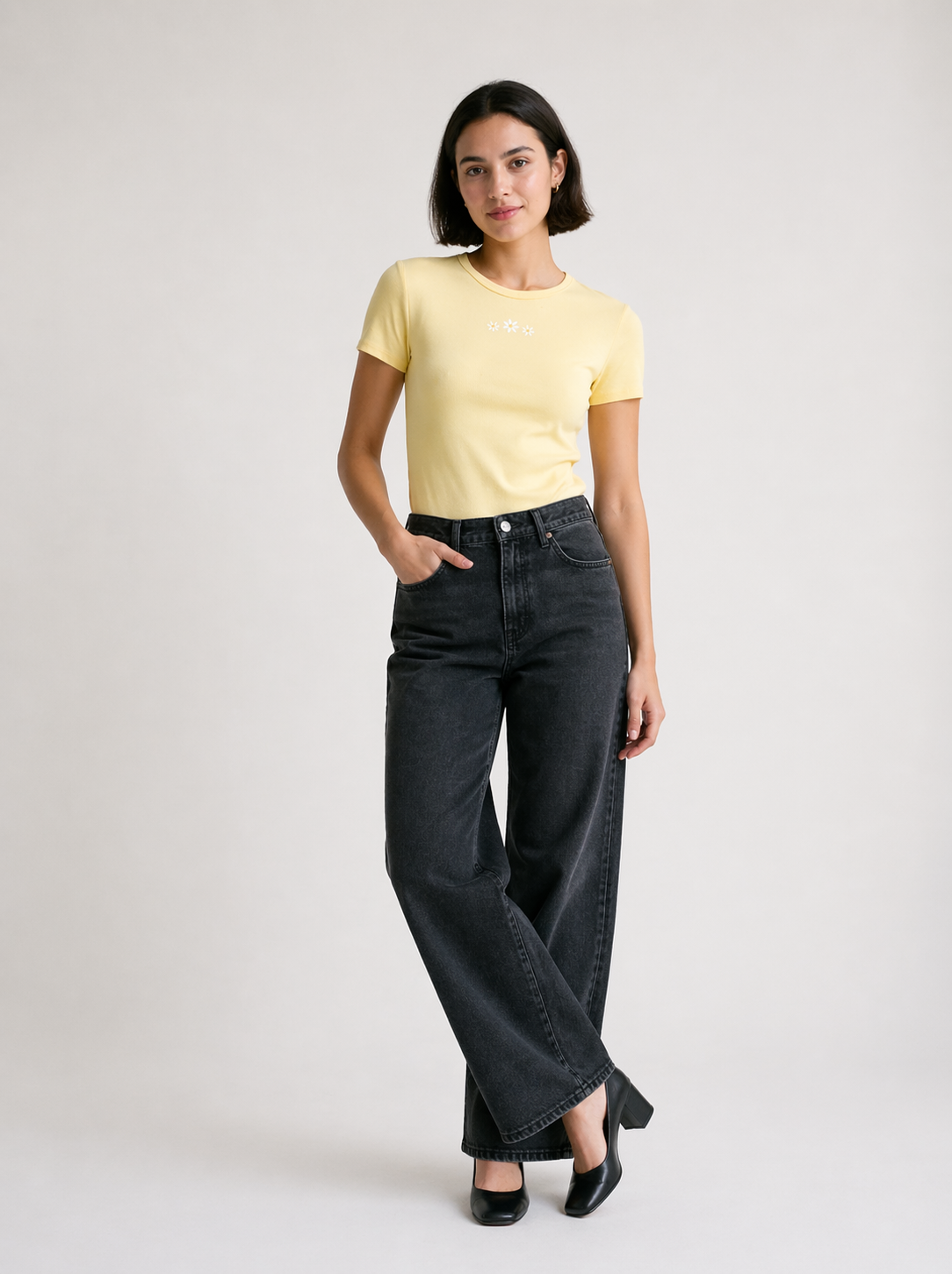 Μπλούζα κοντομάνικη με κεντημένες μαργαρίτες
