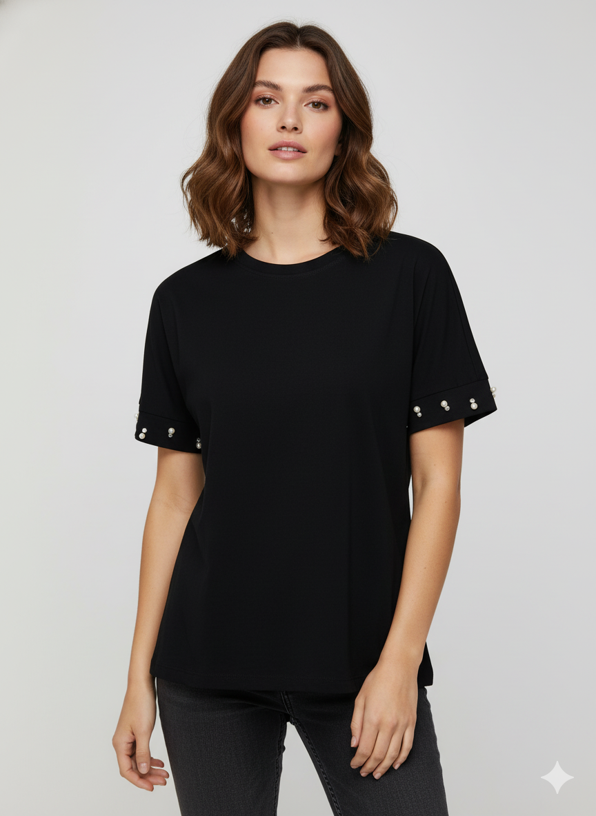 Μπλούζα κοντομάνικη με πέρλες στα μανίκια