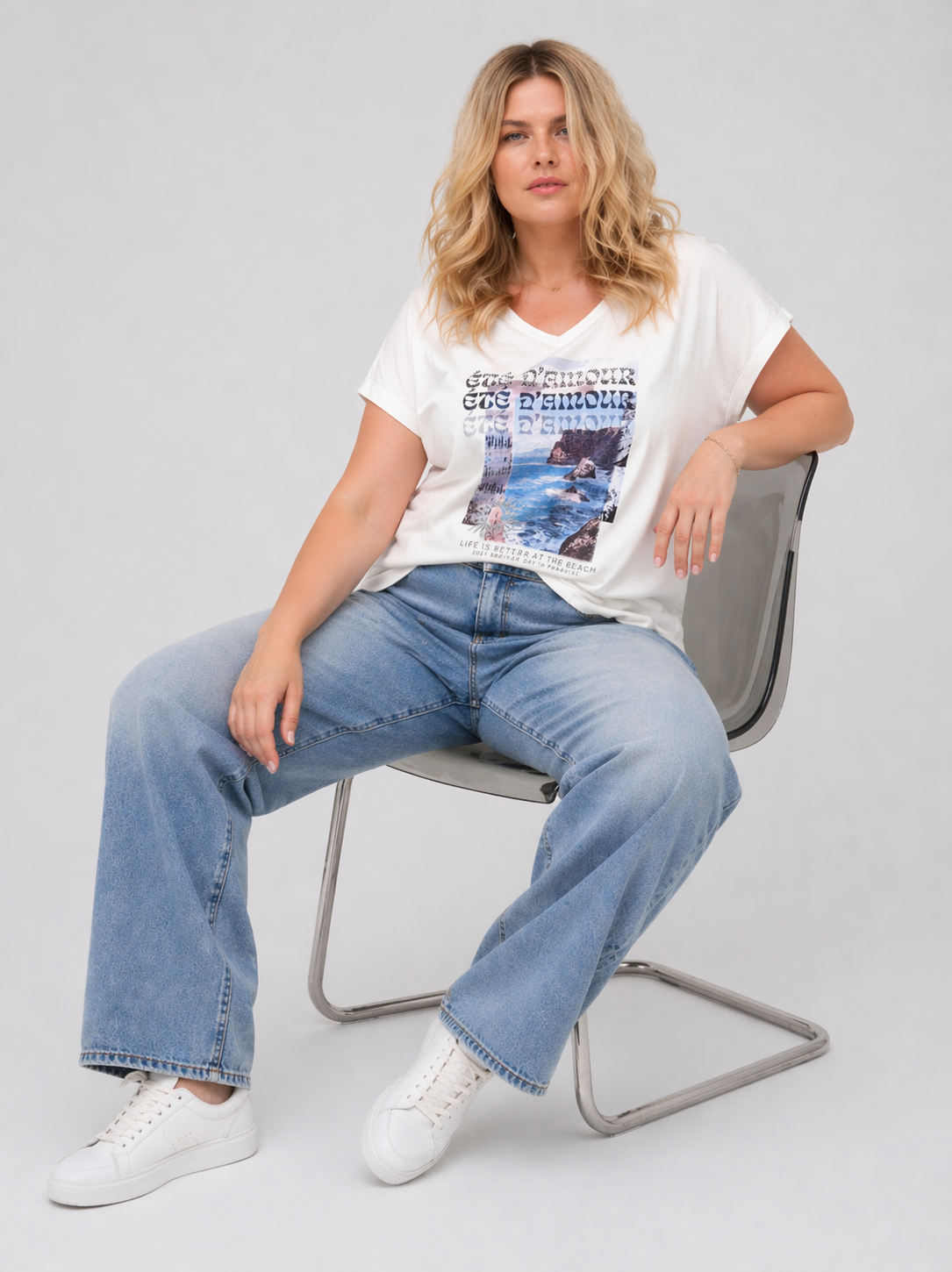 ONLY CARMAKOMA Μπλούζα λευκή, το απόλυτο πασπαρτού κομμάτι που φέρνει το καλοκαίρι στο ντύσιμό σας. Πρόκειται για ένα κλασικό και δροσερό γυναικείο t-shirt, το οποίο ξεχωρίζει χάρη στην εντυπωσιακή photographic στάμπα στο στήθος, με το όμορφο καλοκαιρινό τοπίο και το γαλλικό μήνυμα να δημιουργούν μια χαλαρή, ταξιδιάρικη αισθητική.