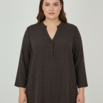Χαλαρή μπλούζα σε σκούρο καφέ με διακριτικό καρό σχέδιο