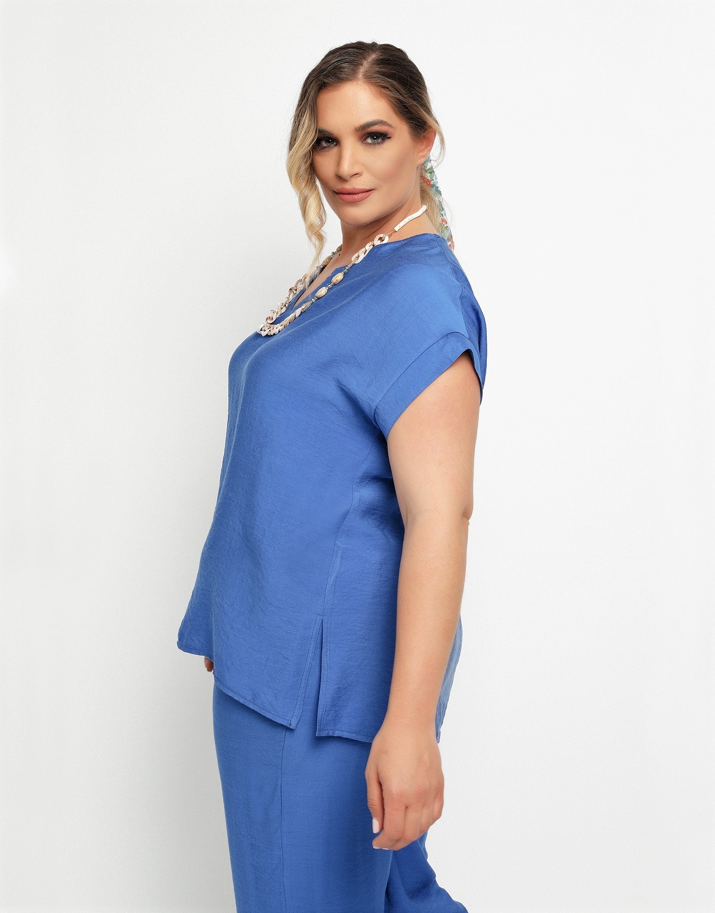 Μπλούζα όψη λινό με κολιέ