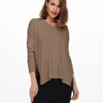 Πλεκτή μπλούζα μακρυμάνικη , Χαλαρή εφαρμογή, V άνοιγμα στο στήθος, Ανοίγματα στα πλαϊνά