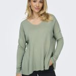 Πλεκτή μπλούζα μακρυμάνικη , Χαλαρή εφαρμογή, V άνοιγμα στο στήθος, Ανοίγματα στα πλαϊνά