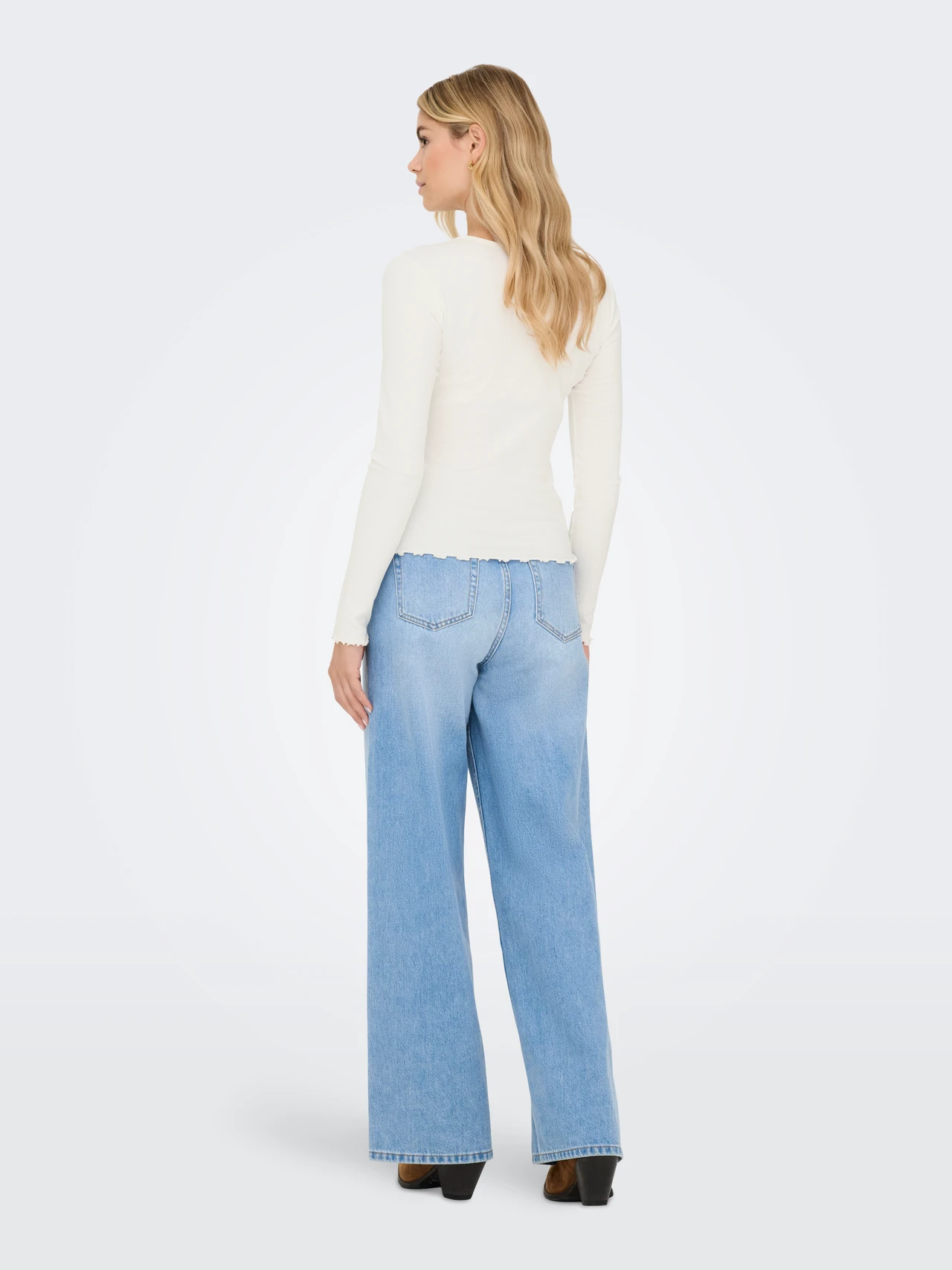 Στρογγυλή λαιμόκοψη και μακριά μανίκια με κυματιστό τελείωμα