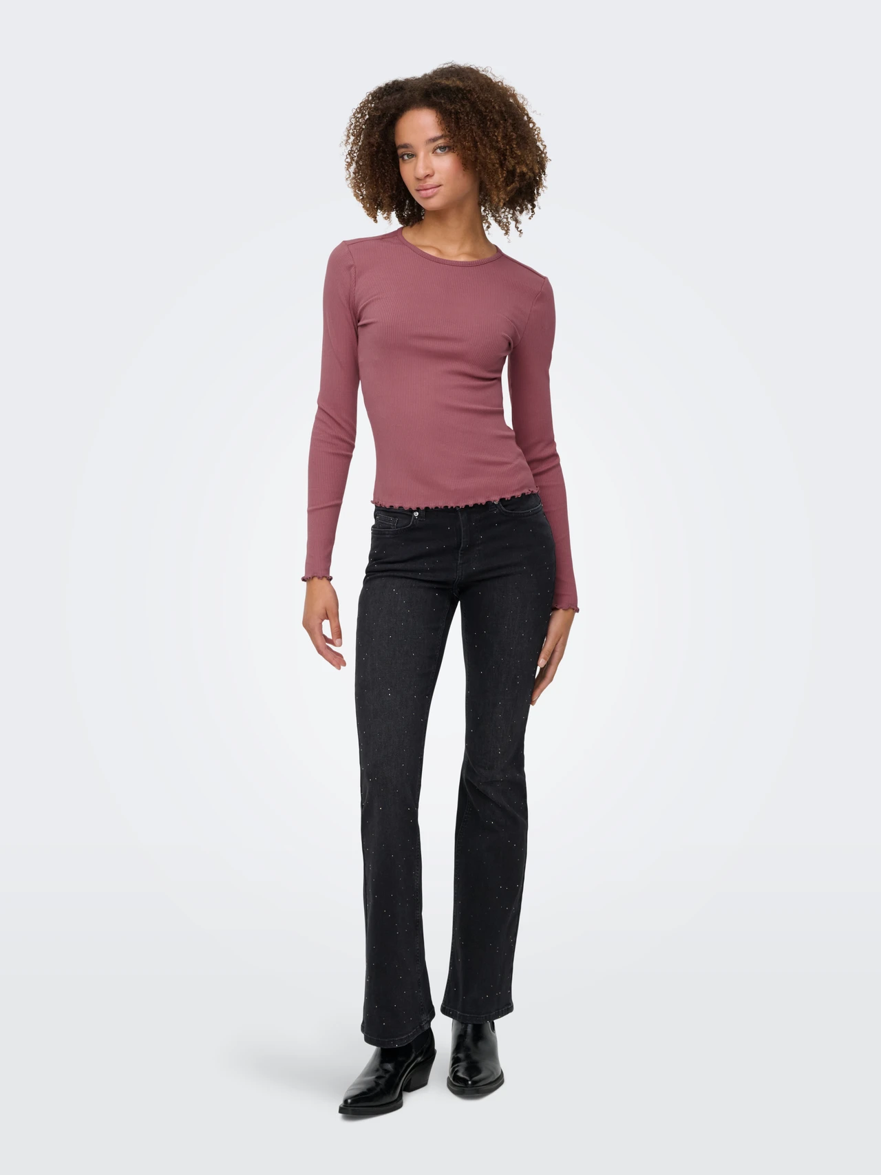 Στρογγυλή λαιμόκοψη και μακριά μανίκια με κυματιστό τελείωμα