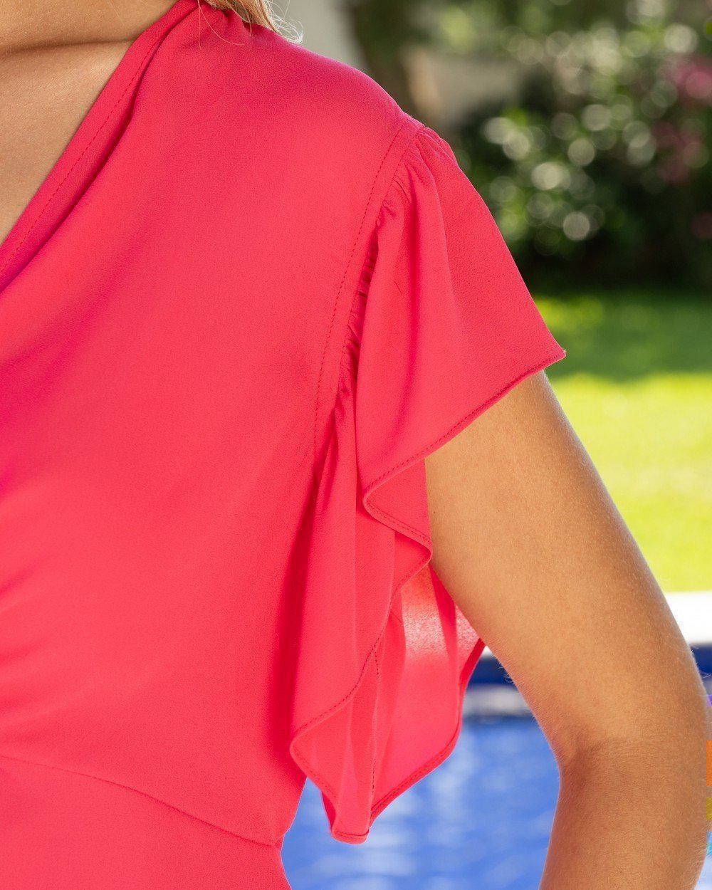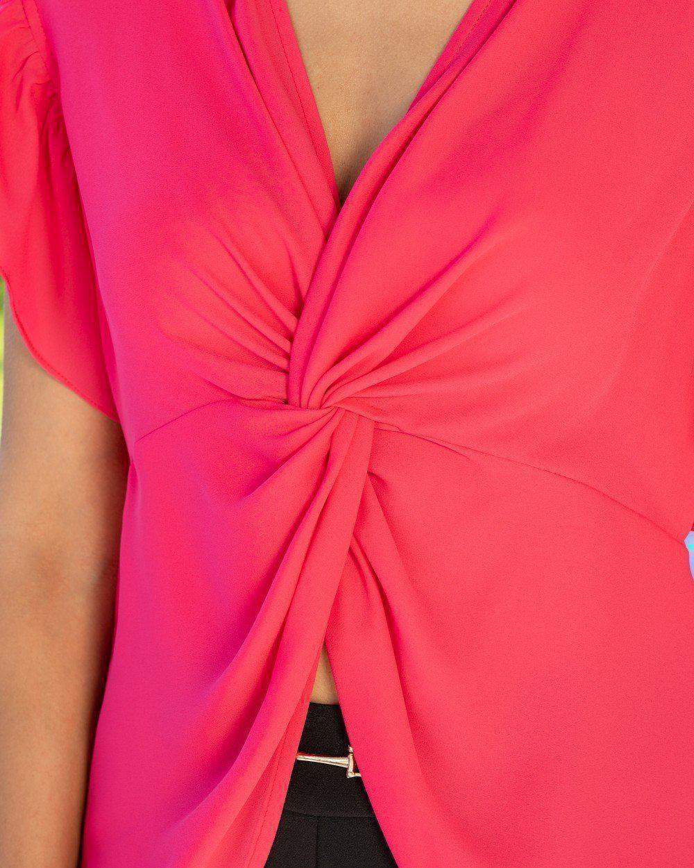 Μπλούζα V κόμπος και βολάν στο μανίκι