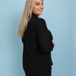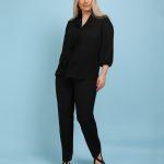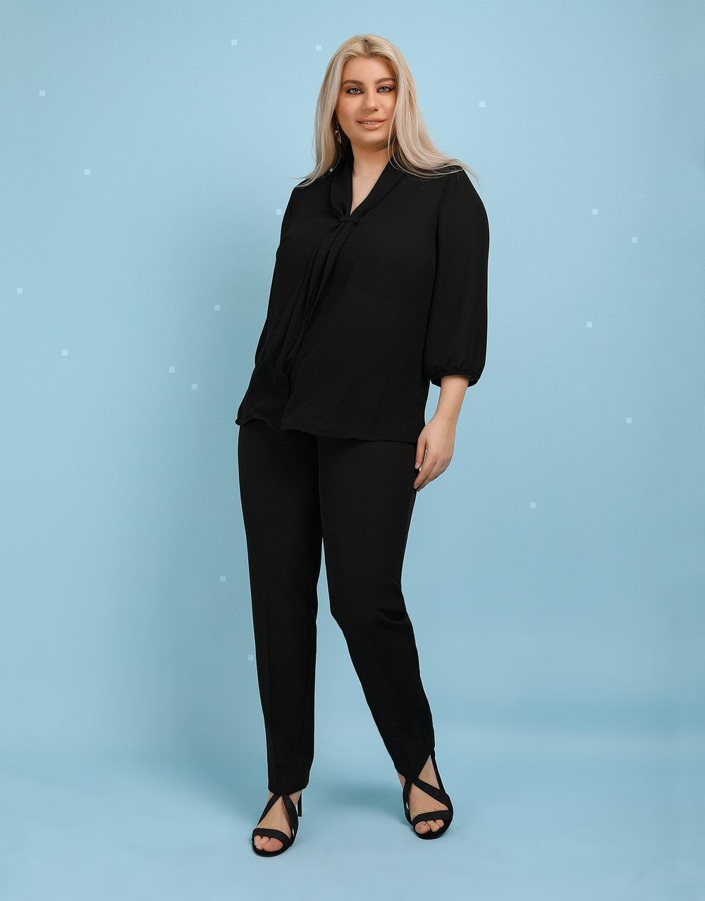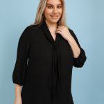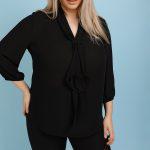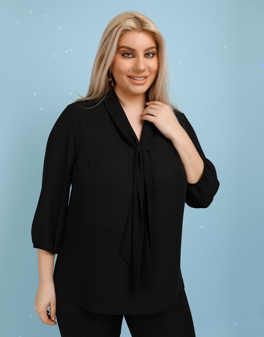 Μονόχρωμη μπλούζα, ζορζέτα με γραβάτα και τρουακάρ μανίκια με λάστιχο.