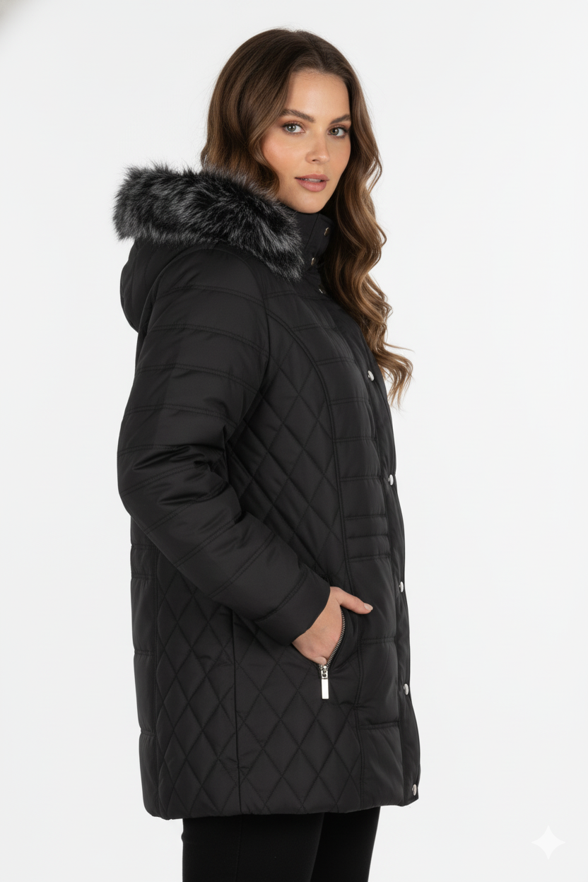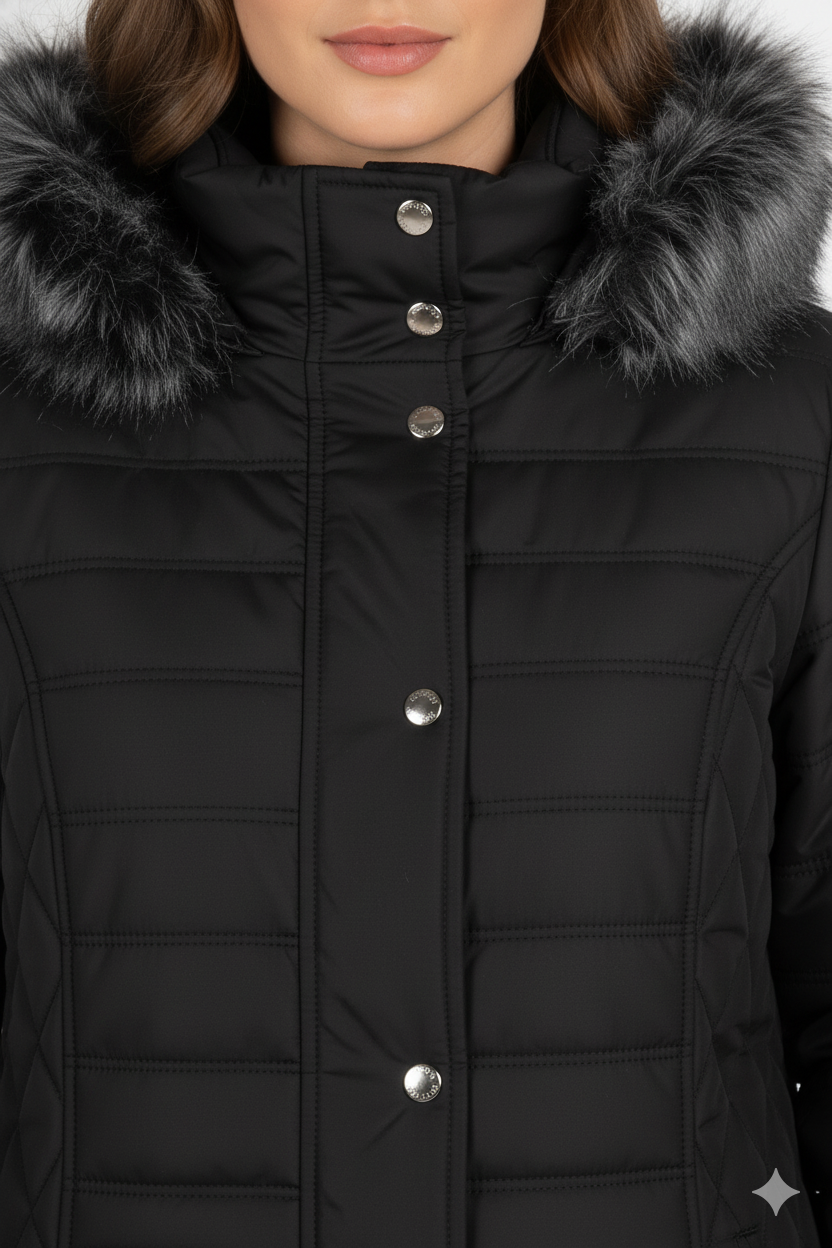 Μπουφάν καπιτονέ με γούνα στην κουκούλα