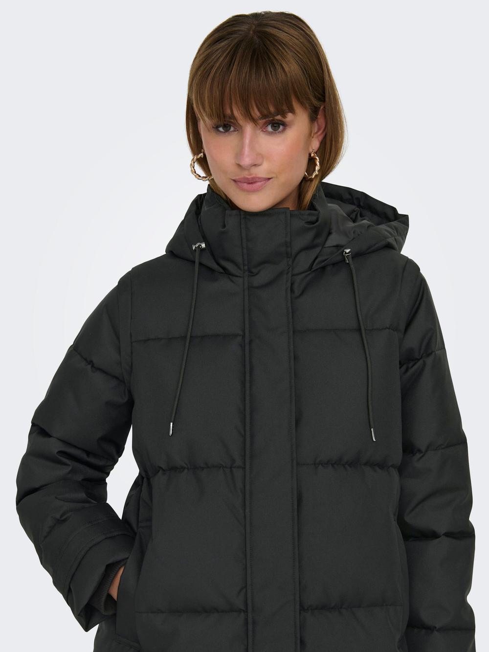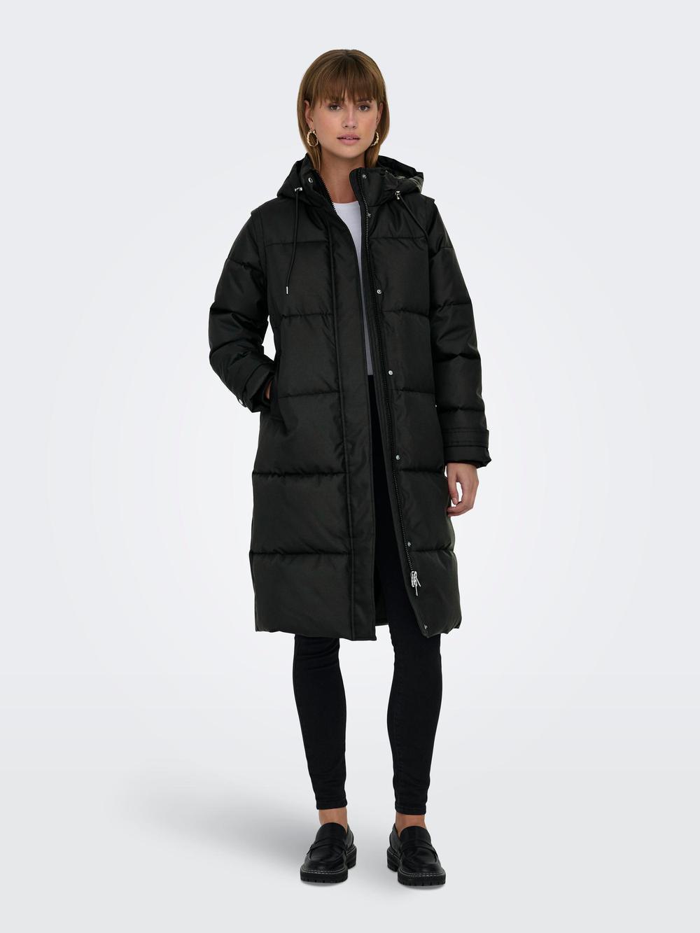 Μπουφάν puffer μακρύ , Αντιανεμικό με κουκούλα, Κλείσιμο με φερμουάρ , Μήκος/μέγεθος : Μακρύ , Φόδρα : Επένδυση από ανακυκλωμένο πολυεστέρα για άνετη αίσθηση